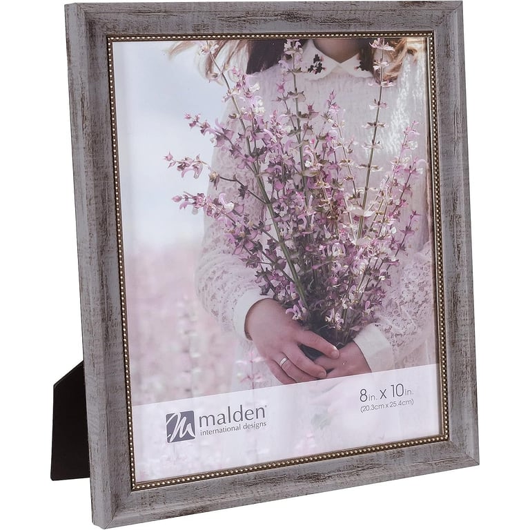 Main view Product Details Malden Designs® MARIN-GREY w/inner bead trim 8x10 frame by Malden® — Nicely stylized contemporary frame with an inner bead trim. Dual function easel back for portrait or landscape use.Glare resistant glass lens.Crafted by Malden Design®. To view the full frame collection, click Malden Frame Collection. MARIN-GREY w/inner bead trim 8x10 frame by Malden® Model #096287178037 List $18.50 You pay $14.95 In stock Can be shipped today [?] Your Price Match is Active Your request for a price of $0.00 for a minimum quantity of has been accepted. You have [time] left to purchase this item for $0.00 instead of $14.95 each. Find a Lower Price? We BEAT All Authorized Retailers [?] FEATURESDisplays:8"x10"Material:Wood (mdf/engineered)Finish:Gray/CharcoalOccasion:Business & office, Celebrating Travels, Friendship, Home decoratingStyle:Contemporary, Distressed - Weathered, SophisticatedOrientation:BothBrand:Malden Designs®Display Type:Desktop or Wall Approx. Overall Dimensions:9 3/8"x11 3/8"x5/8" This item ships in its own box SHARE THIS ITEM Share on Facebook