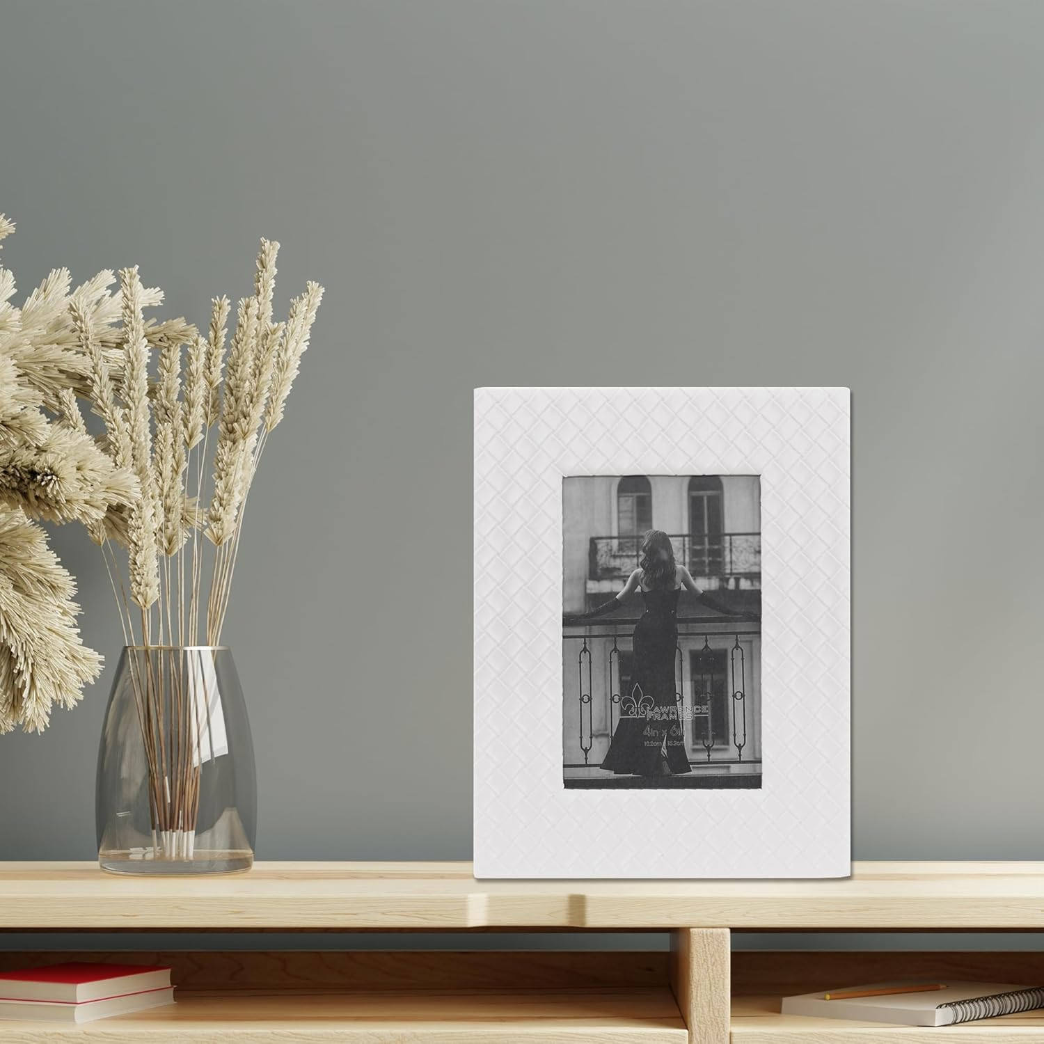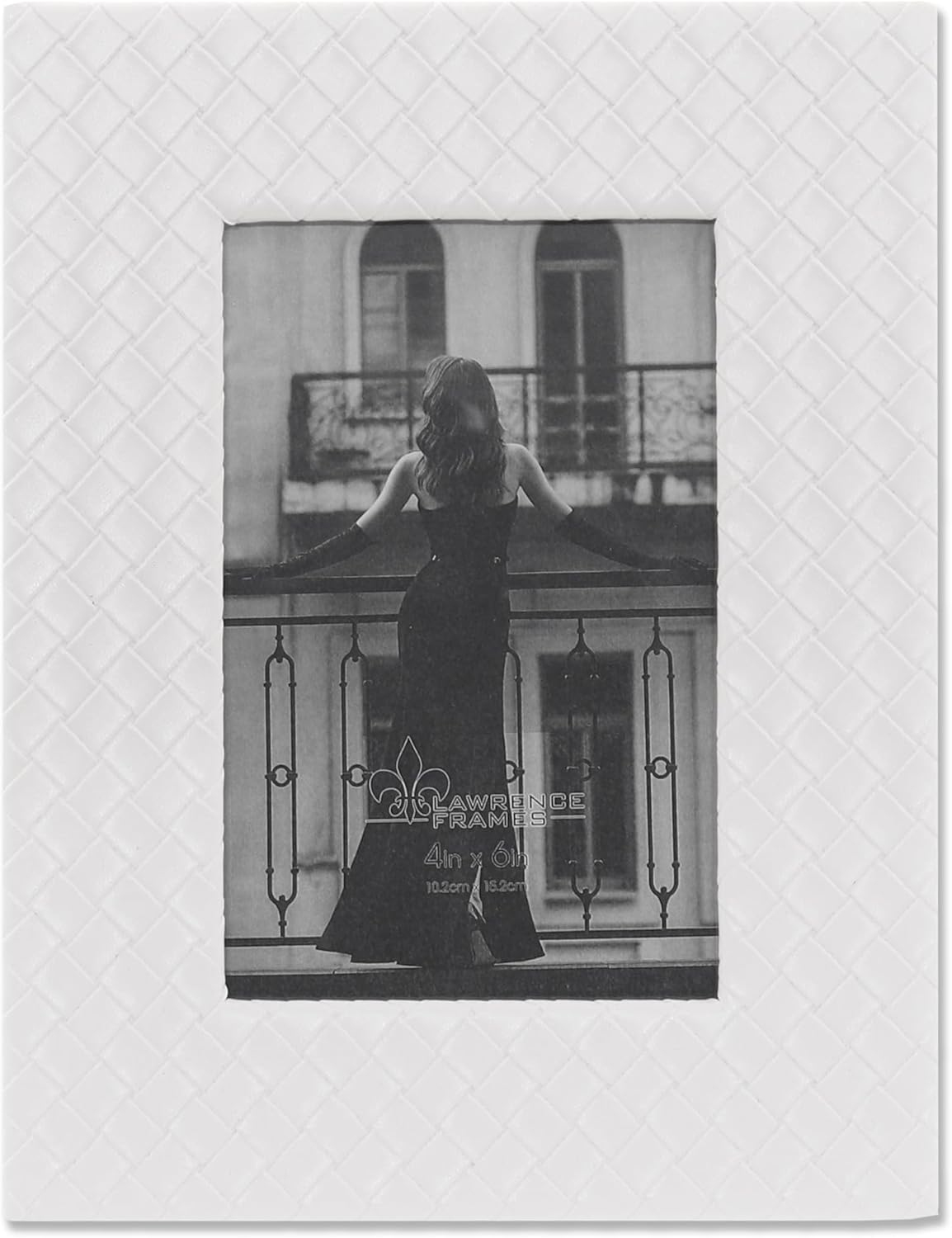 Main view Product Details Lawrence Frames® WOVEN White bonded leather 4x6 frame — Beautifully crafted in white bonded woven pattern leather.Glare resistant glass lens. Easel back for portrait or landscape tabletop display.By Lawrence Frames. WOVEN White bonded leather 4x6 frame Model #751148089364 List $23.00 You pay $17.95 This item IS in stock and can be expected to ship 01/14/2026 Your Price Match is Active Your request for a price of $0.00 for a minimum quantity of has been accepted. You have [time] left to purchase this item for $0.00 instead of $17.95 each. Find a Lower Price? We BEAT All Authorized Retailers [?] FEATURESDisplays:4"x6"Material:Leather (faux)Finish:WhiteOccasion:Bar & Bat Mitzvah, Bon voyage, Business & office, Congratulations, Corporate gifts, Good luck, Grandparent`s Day, Home decorating, Housewarming, Teacher gifts, Team & coach gifts, Thank-Motivate-Reward, Celebrating TravelsStyle:ContemporaryOrientation:BothBrand:Lawrence Frames®Display Type:Desktop or Wall Approx. Overall Dimensions:6 5/8"x8 5/8"x3/4" This item ships in its own box SHARE THIS ITEM Share on Facebook