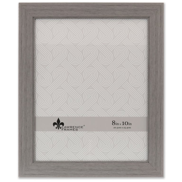 Main view Product Details Lawrence Frames® SUFFOLK Gray 8x10 frame by Lawrence® — Quality composite decorative picture frame with satin gray wood grain finish. Easy open turn button black velvet backing makes it simple to open and insert your photo. Includes hangers for wall mounting and easel backing for tabletop display. By Lawrence® SUFFOLK Gray 8x10 frame by Lawrence® Model #751148082488 List $23.00 You pay $16.95 This item is currently out of stock and we do not have an expected date at the present time. click here to be automatically notified when it comes back in stock or email merchandising@sendaframe.com for availability information. You can place this item in your shopping cart. It will be added to the 'saved for later' section. Your Price Match is Active Your request for a price of $0.00 for a minimum quantity of has been accepted. You have [time] left to purchase this item for $0.00 instead of $16.95 each. Find a Lower Price? We BEAT All Authorized Retailers [?] FEATURESDisplays:8"x10"Material:Wood (mdf/engineered)Finish:Gray/CharcoalOccasion:Home decorating, Housewarming, Weekend Host GiftsStyle:Distressed - Weathered, Rustic/Lodge, CoastalOrientation:BothBrand:Lawrence Frames®Display Type:Desktop or Wall Approx. Overall Dimensions:9 5/8"x11 5/8"x13/16" This item ships in its own box SHARE THIS ITEM Share on Facebook