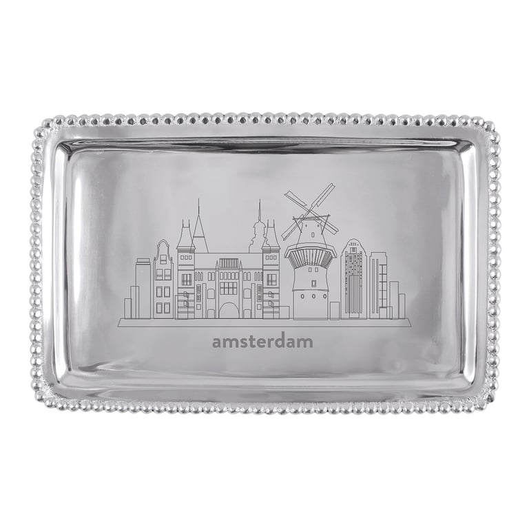 Main view Product Details Mariposa® The AMSTERDAM CITYSCAPE BEADED 7in BUFFET TRAY crafted by Mariposa® — The BEADED BUFFET TRAY with a CITYSCAPES special AMSTERDAM hand engraving. Perfectly sized to fit a check, making this a great way to jazz up a monetary gift. Important Note: Mariposa items are hand engraved. Your piece may differ slightly from the photo. We stock ALL the Mariposa Cityscape styles. Click here to goto a directory of cities. Want to order cityscape on another Mariposa style? Ask our customer service LIVE CHAT rep for assistance. We can get special orders from Mariposa in 2-3 days. The AMSTERDAM CITYSCAPE BEADED 7in BUFFET TRAY crafted by Mariposa® Mariposa® WINTER CELEBRATION Savings - Buy More / Save More * Add this item to your cart for the full details of this promotion. Conditions may apply. Model #808813779010 List $42.00 You pay $38.95 This item IS in stock and can be expected to ship 01/26/2026 In stock Your Price Match is Active Your request for a price of $0.00 for a minimum quantity of has been accepted. You have [time] left to purchase this item for $0.00 instead of $38.95 each. Find a Lower Price? We BEAT All Authorized Retailers [?] FEATURESMaterial:AluminumFinish:SilverOccasion:Birthday, Congratulations, Corporate gifts, Employee honors, Group Events + Parties, Friendship, Inspirational, Military HonorsStyle:Contemporary, Santa Fe, Shabby Chic, Sports & leisure, Eco-Friendly-Recycled, ModernBrand:Mariposa®Display Type:not applicable n/a Approx. Overall Dimensions:6 3/4"x3 3/4"x1/2" This item ships in its own box SHARE THIS ITEM Share on Facebook