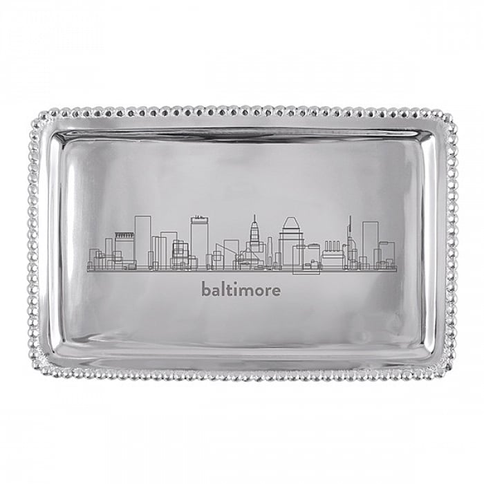 Main view Product Details Mariposa® BALTIMORE-MD BEADED 7in BUFFET TRAY crafted by Mariposa® — The BEADED BUFFET TRAY with a CITYSCAPES special BALTIMORE hand engraving. Perfectly sized to fit a check, making this a great way to jazz up a monetary gift. Important Note: Mariposa items are hand engraved. Your piece may differ slightly from the photo. We stock ALL the Mariposa Cityscape styles. Click here to goto a directory of cities. Want to order cityscape on another Mariposa style? Ask our customer service LIVE CHAT rep for assistance. We can get special orders from Mariposa in 2-3 days. BALTIMORE-MD BEADED 7in BUFFET TRAY crafted by Mariposa® Mariposa® WINTER CELEBRATION Savings - Buy More / Save More * Add this item to your cart for the full details of this promotion. Conditions may apply. Model #808813779065 List $42.00 You pay $38.95 This item IS in stock and can be expected to ship 01/26/2026 In stock Your Price Match is Active Your request for a price of $0.00 for a minimum quantity of has been accepted. You have [time] left to purchase this item for $0.00 instead of $38.95 each. Find a Lower Price? We BEAT All Authorized Retailers [?] FEATURESMaterial:AluminumFinish:SilverOccasion:Birthday, Congratulations, Corporate gifts, Employee honors, Group Events + Parties, Friendship, Inspirational, Military HonorsStyle:Contemporary, Santa Fe, Shabby Chic, Sports & leisure, Eco-Friendly-Recycled, ModernBrand:Mariposa®Display Type:not applicable n/a Approx. Overall Dimensions:6 3/4"x3 3/4"x1/2" This item ships in its own box SHARE THIS ITEM Share on Facebook