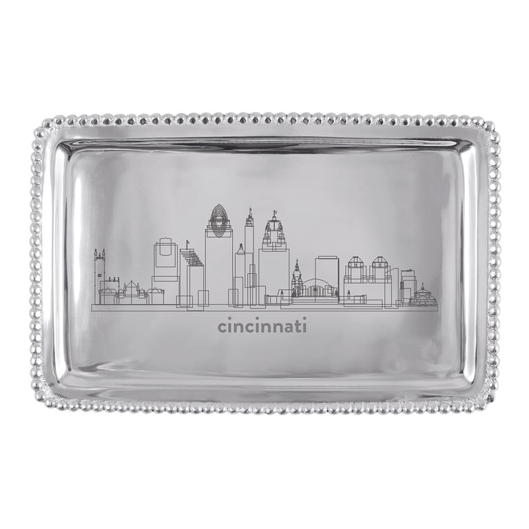 Main view Product Details Mariposa® The CINCINNATI-OHIO CITYSCAPE BEADED 7in BUFFET TRAY crafted by Mariposa® — The BEADED BUFFET TRAY with a CITYSCAPES special CINCINNATI hand engraving. Perfectly sized to fit a check, making this a great way to jazz up a monetary gift. Important Note: Mariposa items are hand engraved. Your piece may differ slightly from the photo. We stock ALL the Mariposa Cityscape styles. Click here to goto a directory of cities. Want to order cityscape on another Mariposa style? Ask our customer service LIVE CHAT rep for assistance. We can get special orders from Mariposa in 2-3 days. The CINCINNATI-OHIO CITYSCAPE BEADED 7in BUFFET TRAY crafted by Mariposa® Mariposa® WINTER CELEBRATION Savings - Buy More / Save More * Add this item to your cart for the full details of this promotion. Conditions may apply. Model #808813779089 List $42.00 You pay $38.95 This item IS in stock and can be expected to ship 01/26/2026 In stock Your Price Match is Active Your request for a price of $0.00 for a minimum quantity of has been accepted. You have [time] left to purchase this item for $0.00 instead of $38.95 each. Find a Lower Price? We BEAT All Authorized Retailers [?] FEATURESMaterial:AluminumFinish:SilverOccasion:Birthday, Congratulations, Corporate gifts, Employee honors, Group Events + Parties, Friendship, Inspirational, Military HonorsStyle:Contemporary, Santa Fe, Shabby Chic, Sports & leisure, Eco-Friendly-Recycled, ModernBrand:Mariposa®Display Type:not applicable n/a Approx. Overall Dimensions:6 3/4"x3 3/4"x1/2" This item ships in its own box SHARE THIS ITEM Share on Facebook