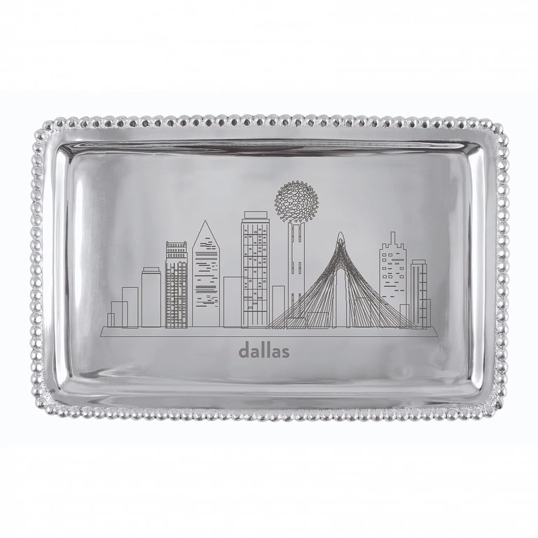 Main view Product Details Mariposa® The DALLAS-TX CITYSCAPE BEADED 7in BUFFET TRAY crafted by Mariposa® — The BEADED BUFFET TRAY with a CITYSCAPES special DALLAS hand engraving. Perfectly sized to fit a check, making this a great way to jazz up a monetary gift. Important Note: Mariposa items are hand engraved. Your piece may differ slightly from the photo. We stock ALL the Mariposa Cityscape styles. Click here to goto a directory of cities. Want to order cityscape on another Mariposa style? Ask our customer service LIVE CHAT rep for assistance. We can get special orders from Mariposa in 2-3 days. The DALLAS-TX CITYSCAPE BEADED 7in BUFFET TRAY crafted by Mariposa® Mariposa® WINTER CELEBRATION Savings - Buy More / Save More * Add this item to your cart for the full details of this promotion. Conditions may apply. Model #808813779119 List $42.00 You pay $38.95 This item IS in stock and can be expected to ship 01/26/2026 In stock Your Price Match is Active Your request for a price of $0.00 for a minimum quantity of has been accepted. You have [time] left to purchase this item for $0.00 instead of $38.95 each. Find a Lower Price? We BEAT All Authorized Retailers [?] FEATURESMaterial:AluminumFinish:SilverOccasion:Birthday, Congratulations, Corporate gifts, Employee honors, Group Events + Parties, Friendship, Inspirational, Military HonorsStyle:Contemporary, Santa Fe, Shabby Chic, Sports & leisure, Eco-Friendly-Recycled, ModernBrand:Mariposa®Display Type:not applicable n/a Approx. Overall Dimensions:6 3/4"x3 3/4"x1/2" This item ships in its own box SHARE THIS ITEM Share on Facebook