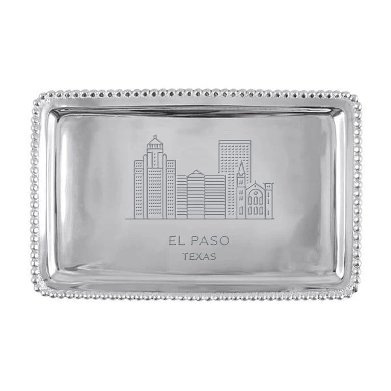 Main view Product Details Mariposa® The EL PASO-TEXAS CITYSCAPE BEADED 7in BUFFET TRAY crafted by Mariposa® — The BEADED BUFFET TRAY with a CITYSCAPES special EL PASO TEXAS hand engraving. Perfectly sized to fit a check, making this a great way to jazz up a monetary gift. Important Note: Mariposa items are hand engraved. Your piece may differ slightly from the photo. We stock ALL the Mariposa Cityscape styles. Click here to goto a directory of cities. Want to order cityscape on another Mariposa style? Ask our customer service LIVE CHAT rep for assistance. We can get special orders from Mariposa in 2-3 days. The EL PASO-TEXAS CITYSCAPE BEADED 7in BUFFET TRAY crafted by Mariposa® Mariposa® WINTER CELEBRATION Savings - Buy More / Save More * Add this item to your cart for the full details of this promotion. Conditions may apply. Model #808813779140 List $42.00 You pay $38.95 This item IS in stock and can be expected to ship 01/26/2026 In stock Your Price Match is Active Your request for a price of $0.00 for a minimum quantity of has been accepted. You have [time] left to purchase this item for $0.00 instead of $38.95 each. Find a Lower Price? We BEAT All Authorized Retailers [?] FEATURESMaterial:AluminumFinish:SilverOccasion:Birthday, Congratulations, Corporate gifts, Employee honors, Group Events + Parties, Friendship, Inspirational, Military HonorsStyle:Contemporary, Santa Fe, Shabby Chic, Sports & leisure, Eco-Friendly-Recycled, ModernBrand:Mariposa®Display Type:not applicable n/a Approx. Overall Dimensions:6 3/4"x3 3/4"x1/2" This item ships in its own box SHARE THIS ITEM Share on Facebook