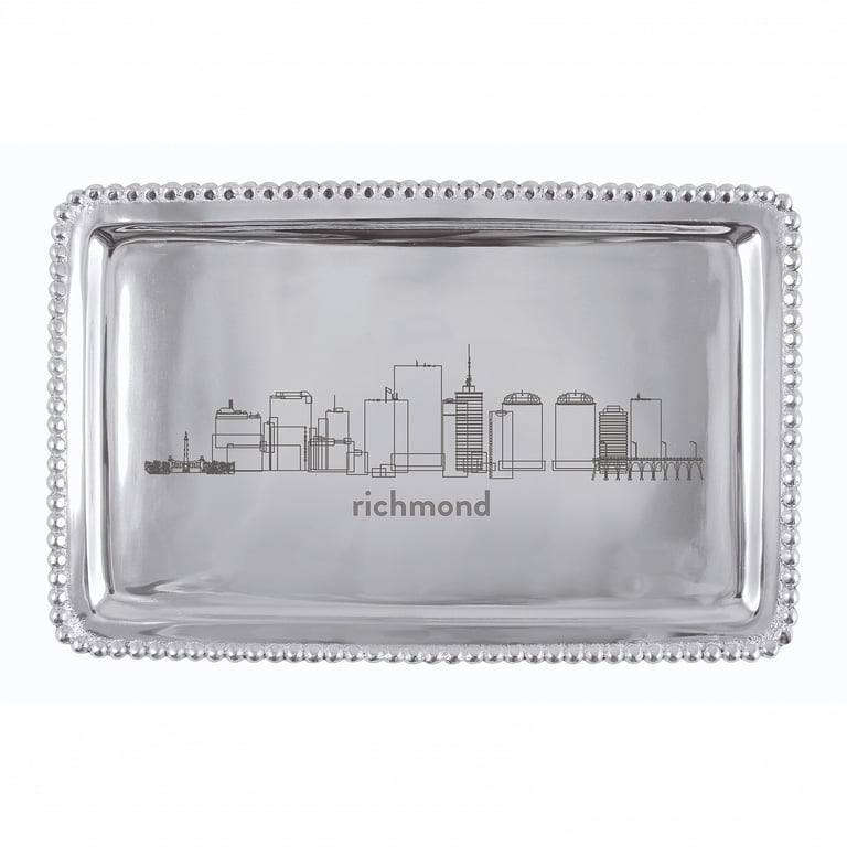 Main view Product Details Mariposa® The RICHMOND-VIRGINIA CITYSCAPE BEADED 7in BUFFET TRAY crafted by Mariposa® — The BEADED BUFFET TRAY with a CITYSCAPES special RICHMOND engraving. Perfectly sized to fit a check, making this a great way to jazz up a monetary gift. Important Note: Mariposa items are hand engraved. Your piece may differ slightly from the photo. We stock ALL the Mariposa Cityscape styles. Click here to goto a directory of cities. Want to order cityscape on another Mariposa style? Ask our customer service LIVE CHAT rep for assistance. We can get special orders from Mariposa in 2-3 days. The RICHMOND-VIRGINIA CITYSCAPE BEADED 7in BUFFET TRAY crafted by Mariposa® Mariposa® WINTER CELEBRATION Savings - Buy More / Save More * Add this item to your cart for the full details of this promotion. Conditions may apply. Model #808813779362 List $42.00 You pay $38.95 This item IS in stock and can be expected to ship 01/26/2026 In stock Your Price Match is Active Your request for a price of $0.00 for a minimum quantity of has been accepted. You have [time] left to purchase this item for $0.00 instead of $38.95 each. Find a Lower Price? We BEAT All Authorized Retailers [?] FEATURESMaterial:AluminumFinish:SilverOccasion:Birthday, Congratulations, Corporate gifts, Employee honors, Group Events + Parties, Friendship, Inspirational, Military HonorsStyle:Contemporary, Santa Fe, Shabby Chic, Sports & leisure, Eco-Friendly-Recycled, ModernBrand:Mariposa®Display Type:not applicable n/a Approx. Overall Dimensions:6 3/4"x3 3/4"x1/2" This item ships in its own box SHARE THIS ITEM Share on Facebook