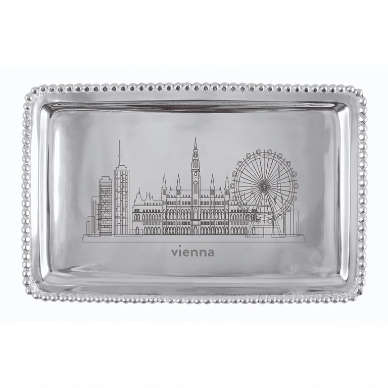 Main view Product Details Mariposa® The VIENNA-AUSTRIA CITYSCAPE BEADED 7in BUFFET TRAY crafted by Mariposa® — The BEADED BUFFET TRAY with a CITYSCAPES special VIENNA engraving. Perfectly sized to fit a check, making this a great way to jazz up a monetary gift. Important Note: Mariposa items are hand engraved. Your piece may differ slightly from the photo. We stock ALL the Mariposa Cityscape styles. Click here to goto a directory of cities. Want to order cityscape on another Mariposa style? Ask our customer service LIVE CHAT rep for assistance. We can get special orders from Mariposa in 2-3 days. The VIENNA-AUSTRIA CITYSCAPE BEADED 7in BUFFET TRAY crafted by Mariposa® Mariposa® WINTER CELEBRATION Savings - Buy More / Save More * Add this item to your cart for the full details of this promotion. Conditions may apply. Model #808813779454 List $42.00 You pay $38.95 This item IS in stock and can be expected to ship 01/26/2026 In stock Your Price Match is Active Your request for a price of $0.00 for a minimum quantity of has been accepted. You have [time] left to purchase this item for $0.00 instead of $38.95 each. Find a Lower Price? We BEAT All Authorized Retailers [?] FEATURESMaterial:AluminumFinish:SilverOccasion:Birthday, Congratulations, Corporate gifts, Employee honors, Group Events + Parties, Friendship, Inspirational, Military HonorsStyle:Contemporary, Santa Fe, Shabby Chic, Sports & leisure, Eco-Friendly-Recycled, ModernBrand:Mariposa®Display Type:not applicable n/a Approx. Overall Dimensions:6 3/4"x3 3/4"x1/2" This item ships in its own box SHARE THIS ITEM Share on Facebook