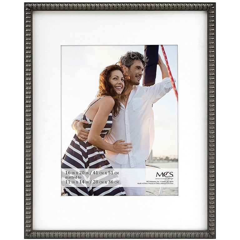 Main view Angled Catalog Photo Hanging Hooks provided Product Details MCS® THIN BEAD Wood Pewter matted 16x20/11x14 frame — The MCS Thin Bead frame series has an upscale look with a value price. Use these as single frames or group them together to make a frame wall gallery. The thin bead series is available in a Pewter wash (here) or a Champagne wash. See below for the entire series. Wall mounts included for easy hanging. Glare resistant glass lens. By MCS® THIN BEAD Wood Pewter matted 16x20/11x14 frame Model #044021476000 List $44.00 You pay $38.95 This item IS in stock and can be expected to ship 01/21/2026 In stock Your Price Match is Active Your request for a price of $0.00 for a minimum quantity of has been accepted. You have [time] left to purchase this item for $0.00 instead of $38.95 each. Find a Lower Price? We BEAT All Authorized Retailers [?] FEATURESDisplays:11"x14"Material:Wood (full grain)Finish:Gray/Charcoal, SilverOccasion:Business & office, Friendship, Home decorating, Team & coach gifts, Thank-Motivate-Reward, Celebrating TravelsStyle:Classic, Contemporary, Ornate, TraditionalOrientation:BothBrand:MCS®Display Type:Wall Only Approx. Overall Dimensions:17 1/2"x21 1/2"x13/16" This item ships in its own box SHARE THIS ITEM Share on Facebook