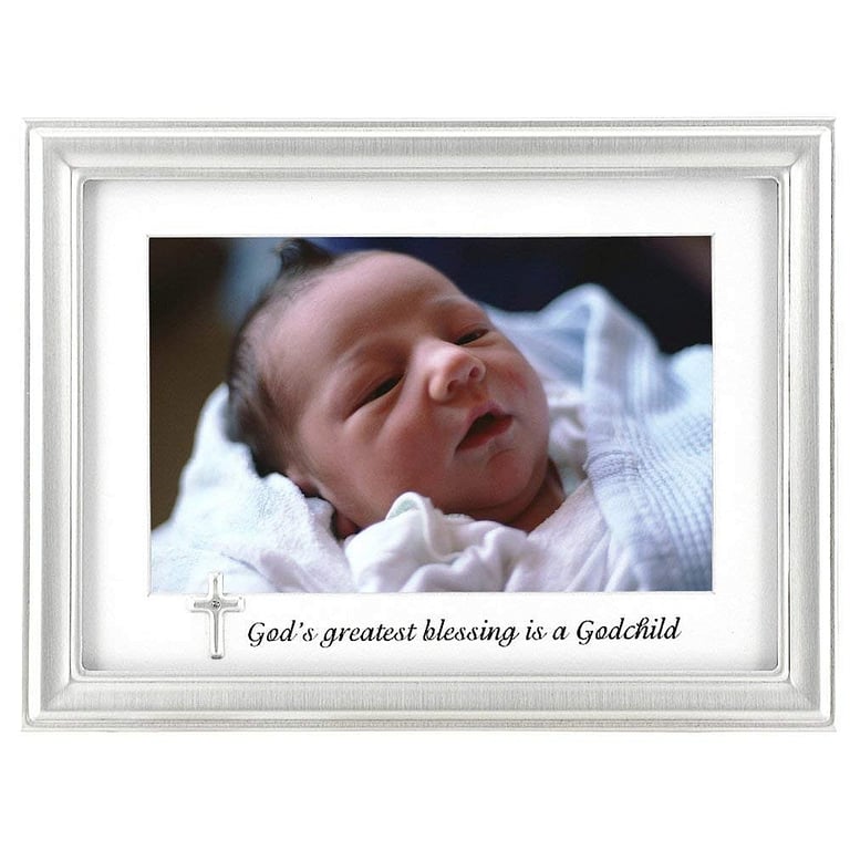 Product Details Malden Designs® GODCHILD silver charm frame by Malden Design® — God's greatest blessing is a Godchild Celebrate being a Godparent with our beautiful Godchild picture frame.Display your 4"x6" photo accented with silver-cross charm detail.Nice hardboard backing. Glare resistant glass lens.Crafted by Malden Design®, maker of fine picture frames for generations. GODCHILD silver charm frame by Malden Design® Model #096287989916 List $15.00 You pay $11.95 In stock Can be shipped today [?] Your Price Match is Active Your request for a price of $0.00 for a minimum quantity of has been accepted. You have [time] left to purchase this item for $0.00 instead of $11.95 each. Find a Lower Price? We BEAT All Authorized Retailers [?] FEATURESDisplays:4"x6"Material:Metallic (all)Finish:SilverOccasion:Baptism + Christening, Friendship, New babyStyle:Classic, Traditional, Words & whimsy, Sentiments | ready made, Christian DevotionalsOrientation:Horizontal OnlyBrand:Malden Designs® This item ships in its own box SHARE THIS ITEM Share on Facebook