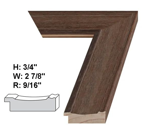 WIDE Brown with Grey Tones Rustic Wood Custom-Cut™ H: 3/4 W: 2 7/8 R: 9/16in