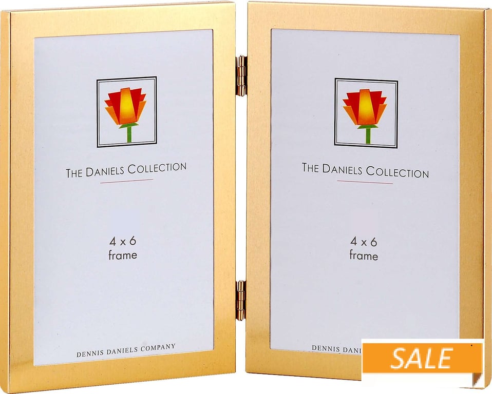 Main view Full view Product Details Dennis Daniels® Golden Aluminum 4x6 hinged by Dennis Daniels® — Dennis Daniels® introduces a line of coated aluminum styles in very fashionable colors.This piece is carefree gold-plated. See Related Items section in the lower right of this page for other pieces.A super hinged double, you will enjoy the fresh look it creates to a photo theme. Glare resistant glass lenses.Crafted by Dennis Daniels® - the beautiful frame people of California. Golden Aluminum 4x6 hinged by Dennis Daniels® Model #782680011896 List $18.50 You pay $9.90 This item IS in stock and can be expected to ship 01/28/2026 In stock Your Price Match is Active Your request for a price of $0.00 for a minimum quantity of has been accepted. You have [time] left to purchase this item for $0.00 instead of $9.90 each. Find a Lower Price? We BEAT All Authorized Retailers [?] FEATURESDisplays:4"x6"Material:AluminumFinish:GoldOccasion:Birthday, Mother`s Day, Home decorating, Corporate giftsStyle:Classic, Contemporary, MinimalOrientation:Vertical OnlyBrand:Dennis Daniels®Display Type:Wall Only This item ships in its own box SHARE THIS ITEM Share on Facebook