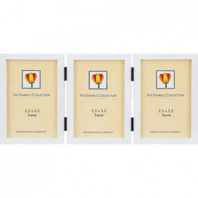 Product Details Dennis Daniels® GALLERY WOODS White wood hinged wallet-size 2.5x3.5 triple by Dennis Daniels® — Very nicely crafted with select hardwoods, tailored corners and solid brass hinges.Pieces have black hardboard backs with swivel tabs that easily open to insert prints. Frame edge is a very contemporary ½" all-around. Glare resistant glass lenses.For tabletop display only.Quality crafted by Dennis Daniels® of California, maker of fine frames for generations. GALLERY WOODS White wood hinged wallet-size 2.5x3.5 triple by Dennis Daniels® Model #782680017966 List $27.50 You pay $23.95 This item is currently out of stock and we do not have an expected date at the present time. click here to be automatically notified when it comes back in stock or email merchandising@sendaframe.com for availability information. You can place this item in your shopping cart. It will be added to the 'saved for later' section. Your Price Match is Active Your request for a price of $0.00 for a minimum quantity of has been accepted. You have [time] left to purchase this item for $0.00 instead of $23.95 each. Find a Lower Price? We BEAT All Authorized Retailers [?] FEATURESDisplays:2.50"x3.50"Material:Wood (full grain)Finish:WhiteOccasion:Birthday, Housewarming, Sweet 16, Teacher gifts, Business & office, Corporate gifts, Home decorating, Team & coach gifts, Celebrating TravelsStyle:Classic, Contemporary, Romantic, Sports & leisure, Traditional, MinimalOrientation:Vertical OnlyBrand:Dennis Daniels®Display Type:Desktop Only This item ships in its own box SHARE THIS ITEM Share on Facebook