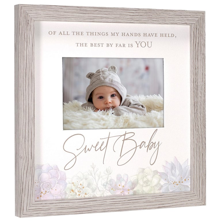 Main view Product Details Malden Designs® Sweet Baby 4x6 Expressions frame — OF ALL THE THINGS MY HANDS HAVE HELD THE BEST BY FAR IS YOU SWEET BABY Add a great photo and you have a gift that will make anyone beam with joy anytime they sees it !Fashioned in gray grained-wood finish. Glare resistant glass lens. By Malden. Sweet Baby 4x6 Expressions frame Malden Designs® FALL CELEBRATION Savings - ends SundayBuy More / Save More * Add this item to your cart for the full details of this promotion. Conditions may apply. Model #87177504 List $17.50 You pay $13.95 In stock Can be shipped today [?] Your Price Match is Active Your request for a price of $0.00 for a minimum quantity of has been accepted. You have [time] left to purchase this item for $0.00 instead of $13.95 each. Find a Lower Price? We BEAT All Authorized Retailers [?] FEATURESDisplays:4"x6"Material:Wood (mdf/engineered)Finish:Gray/CharcoalOccasion:Baby shower, New babyStyle:Florals, Words & whimsy, Expressions > ready madeOrientation:Horizontal OnlyBrand:Malden Designs®Display Type:Desktop or Wall Approx. Overall Dimensions:10"x10"x7/8" This item ships in its own box SHARE THIS ITEM Share on Facebook