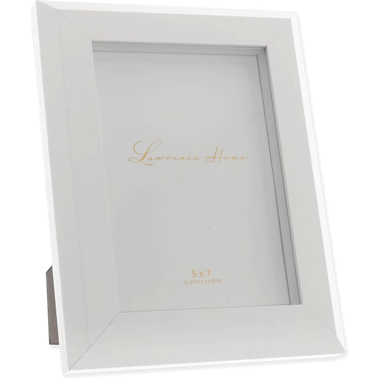 Main view Product Details Lawrence Frames® WHITE TANDEM 5x7 frame — Quality composite decorative picture frame with white angled wood grain finish. Easy open turn button black velvet backing makes it simple to insert your photo. Includes hangers for wall mounting and easel backing for tabletop display. Glare resistant glass lens. By Lawrence® WHITE TANDEM 5x7 frame Model #751148090919 List $17.00 You pay $10.95 This item IS in stock and can be expected to ship 02/18/2026 Your Price Match is Active Your request for a price of $0.00 for a minimum quantity of has been accepted. You have [time] left to purchase this item for $0.00 instead of $10.95 each. Find a Lower Price? We BEAT All Authorized Retailers [?] FEATURESDisplays:5"x7"Material:Wood (mdf/engineered)Finish:WhiteOccasion:Business & office, Home decoratingStyle:Contemporary, Rustic/LodgeOrientation:BothBrand:Lawrence Frames®Display Type:Desktop or Wall This item ships in its own box SHARE THIS ITEM Share on Facebook