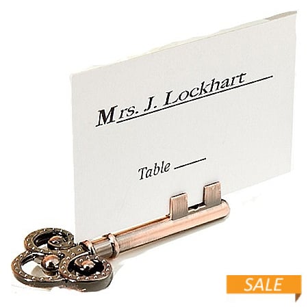 Main view Product Details Fashioncraft-Excello Vintage-inspired SKELETON KEY Place Card Holder — Sure to unlock smiles and memories for years to come, this favor may not really open doors but it will be the key to favor success. Description and details: Each measures 2¾" long x 1¼" wide Made of cast metal with an antique bronze finish Exceptionally crafted to resemble an antique skeleton key Ornate design features include a three ring "bow" top with a raised dot pattern At the bottom are perpendicular key notches on the key's "blade" with a slit for easy insertion and display of a place card, note or photo Come packed with place card included Vintage-inspired SKELETON KEY Place Card Holder Model #54053972 List $4.00 You pay $1.95 In stock Can be shipped today [?] Your Price Match is Active Your request for a price of $0.00 for a minimum quantity of has been accepted. You have [time] left to purchase this item for $0.00 instead of $1.95 each. Find a Lower Price? We BEAT All Authorized Retailers [?] FEATURESMaterial:Metallic (all)Finish:BronzeOccasion:Baby shower, Group Events + Parties, WeddingStyle:Antique, Colonial, Rustic/Lodge, Shabby Chic, Sports & leisure, TraditionalBrand:Fashioncraft-ExcelloDisplay Type:Desktop Only Approx. Overall Dimensions:2 3/4"x1 1/4" This item ships in its own box SHARE THIS ITEM Share on Facebook