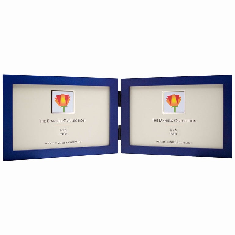 Main view full view Product Details Dennis Daniels® The Original DANIELS W41: GALLERY WOODS <u>horizontal</u> blue stained 6x4 hinged by Dennis Daniels® — A superbly crafted hinged double, you will enjoy the look it gives to your photo story.Frame edge is a contemporary ½" all-around.Beautifully finished hardwood moulding with tapered seams. Glare resistant glass lenses. Brass hinges. Attractive black hardboard back.Crafted by Dennis Daniels® , the beautiful frame people of California. The Original DANIELS W41: GALLERY WOODS horizontal blue stained 6x4 hinged by Dennis Daniels® Model #782680014101 List $24.50 You pay $16.95 In stock Can be shipped today [?] Your Price Match is Active Your request for a price of $0.00 for a minimum quantity of has been accepted. You have [time] left to purchase this item for $0.00 instead of $16.95 each. Find a Lower Price? We BEAT All Authorized Retailers [?] FEATURESDisplays:4"x6"Material:Wood (full grain)Finish:BlueOccasion:Business & office, Corporate gifts, Home decorating, Teacher gifts, Team & coach gifts, Celebrating TravelsStyle:Classic, Bold Colors, Contemporary, Minimal, TraditionalOrientation:Horizontal OnlyBrand:Dennis Daniels®Display Type:Desktop Only This item ships in its own box SHARE THIS ITEM Share on Facebook