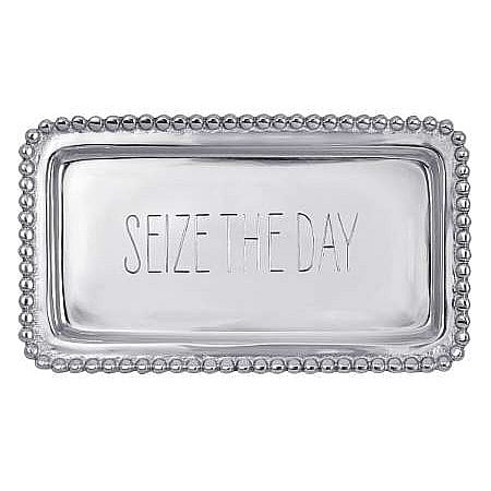 Main view Gift Packaging Product Details Mariposa® SEIZE THE DAY 7in Statement Tray crafted by Mariposa® — SEIZE THE DAY Let the inspirational message of this tray motivate you daily, or encourage a friend or loved one. Perfectly sized to fit a check, making this a great way to jazz up a monetary gift. The STATEMENT TRAY is hand-crafted by Mariposa. SendAFrame stocks the entire Mariposa® picture frame line - and related Brand and Design styled items like this special tray. Shop the entire collection: Mariposa® Design Collection. Always shipped in a Mariposa beautiful signature box - makes gifting easy! Important Note: Mariposa items are hand engraved. Your piece may differ slightly from the photo. SEIZE THE DAY 7in Statement Tray crafted by Mariposa® Mariposa® WINTER CELEBRATION Savings - Buy More / Save More * Add this item to your cart for the full details of this promotion. Conditions may apply. Model #808813132549 List $42.00 You pay $38.95 This item IS in stock and can be expected to ship 01/21/2026 In stock Your Price Match is Active Your request for a price of $0.00 for a minimum quantity of has been accepted. You have [time] left to purchase this item for $0.00 instead of $38.95 each. Find a Lower Price? We BEAT All Authorized Retailers [?] FEATURESMaterial:AluminumFinish:SilverOccasion:Birthday, Congratulations, Corporate gifts, Employee honors, Group Events + Parties, Friendship, Good luck, Graduation, Housewarming, Inspirational, Military Honors, Retirement, Romantic, Team & coach gifts, Thank-Motivate-Reward, WeddingStyle:Contemporary, Santa Fe, Shabby Chic, Sports & leisure, Words & whimsy, Eco-Friendly-Recycled, Modern, Sentiments | ready made, RomanticBrand:Mariposa®Display Type:not applicable n/a Approx. Overall Dimensions:6 3/4"x3 3/4"x1/2" This item ships in its own box SHARE THIS ITEM Share on Facebook