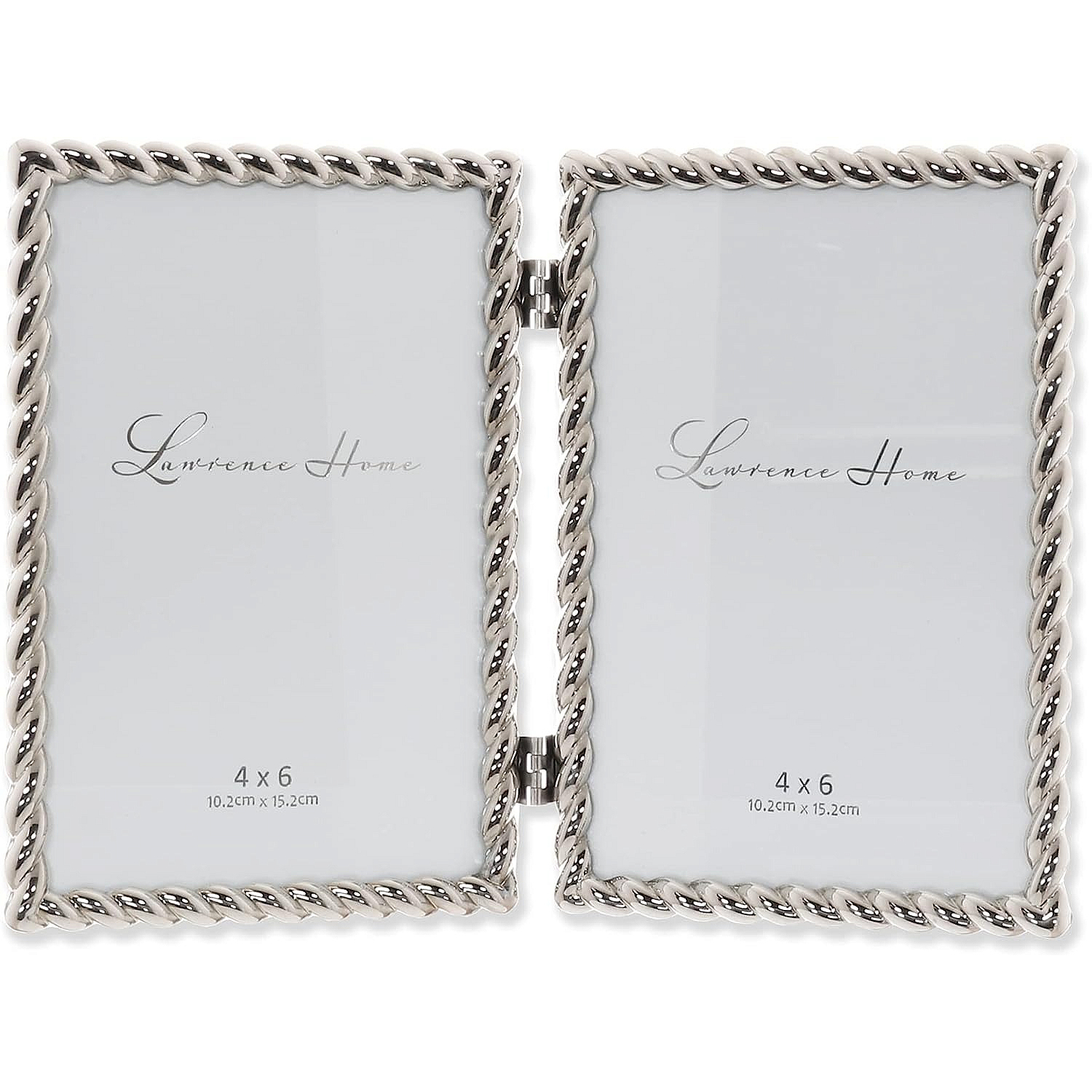 Main view Product Details Lawrence Frames® Silverplate ROPE BORDER 4x6 Double frame — Our brushed silver plate frame is nicely crafted with a beautiful rope trim.Attractively backed for wonderful desk appeal. Or use the wall mounts for easy hanging. Glare resistant glass lenses. By Lawrence®. Silverplate ROPE BORDER 4x6 Double frame Model #48085502 List $42.00 You pay $32.95 This item IS in stock and can be expected to ship 11/21/2025 Your Price Match is Active Your request for a price of $0.00 for a minimum quantity of has been accepted. You have [time] left to purchase this item for $0.00 instead of $32.95 each. Find a Lower Price? We BEAT All Authorized Retailers [?] FEATURESDisplays:4"x6"Material:SilverplateFinish:SilverOccasion:Anniversary, Birthday, Good luck, Mother`s Day, Retirement, Romantic, Teacher gifts, Thank-Motivate-Reward, Celebrating Travels, WeddingStyle:Classic, TraditionalOrientation:Vertical OnlyBrand:Lawrence Frames®Display Type:Desktop or Wall This item ships in its own box SHARE THIS ITEM Share on Facebook