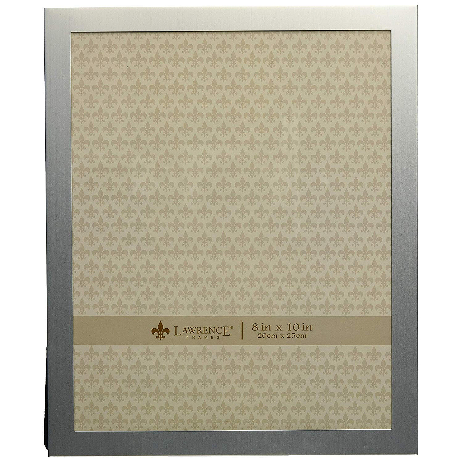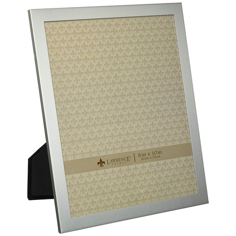 Main view Product Details Lawrence Frames® Brushed Silverplate 8x10 frame — This simple brushed aluminum frame is great for personalizing - or leave clean and simple to showcase the photo.Moulding measures 5/8" wide. The attractive hardboard back features a dual easel for either portrait or landscape secure tabletop display. Glare resistant glass lens.By Lawrence Frames®, crafting fine frames for generations. Brushed Silverplate 8x10 frame Model #751148040716 List $27.50 You pay $23.95 In stock Ships next business day [?] Your Price Match is Active Your request for a price of $0.00 for a minimum quantity of has been accepted. You have [time] left to purchase this item for $0.00 instead of $23.95 each. Find a Lower Price? We BEAT All Authorized Retailers [?] FEATURESDisplays:8"x10"Material:AluminumFinish:SilverOccasion:Business & office, Employee honors, BirthdayStyle:Classic, Contemporary, TraditionalOrientation:BothBrand:Lawrence Frames®Display Type:Desktop Only Approx. Overall Dimensions:9"x11"x1/2" This item ships in its own box SHARE THIS ITEM Share on Facebook