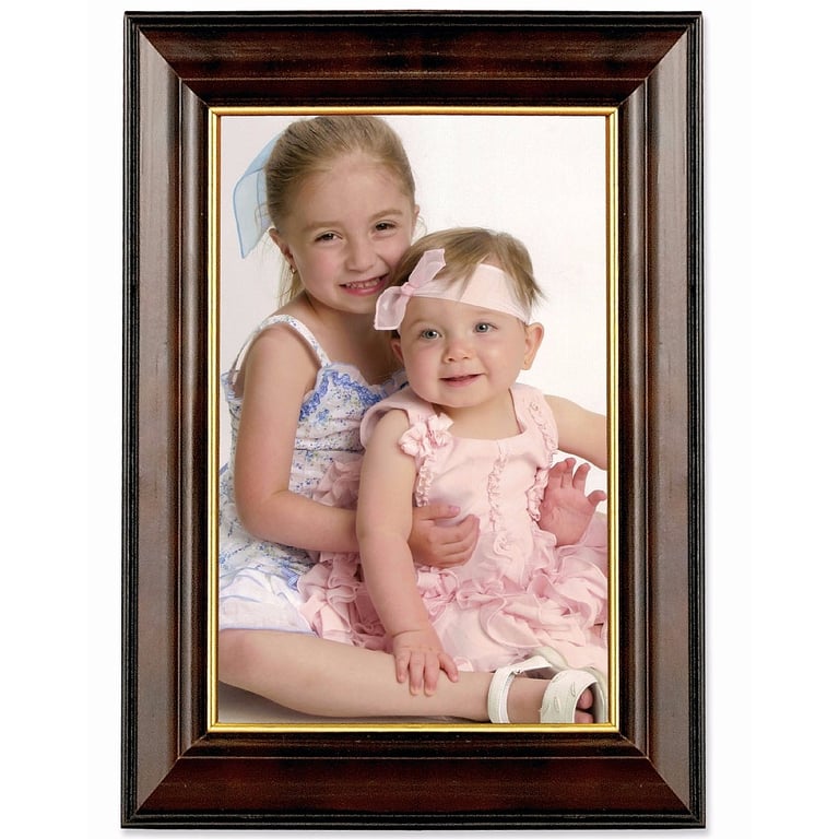 Product Details Lawrence Frames® Walnut w/Gold inner trim 5x7 Frame — A quality, traditional dark walnut brown wood frame with gold inner liner is trimmed in goild. Display your print or photo vertically or horizontally with dual back easel - or with included wall mount. Glare resistant glass lens; nice hardboard backing. By Lawrence® Walnut w/Gold inner trim 5x7 Frame Model #751148058025 List $27.50 You pay $23.95 In stock Ships next business day [?] Your Price Match is Active Your request for a price of $0.00 for a minimum quantity of has been accepted. You have [time] left to purchase this item for $0.00 instead of $23.95 each. Find a Lower Price? We BEAT All Authorized Retailers [?] FEATURESDisplays:5"x7"Material:Wood (mdf/engineered)Finish:Brown, GoldOccasion:Business & office, Home decorating, Weekend Host Gifts, Housewarming, Military Honors, Teacher giftsStyle:Classic, TraditionalOrientation:BothBrand:Lawrence Frames®Display Type:Desktop or Wall This item ships in its own box SHARE THIS ITEM Share on Facebook
