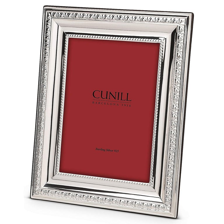 Back to results Scroll Items 2701 of 11385 Family Members 4"x6" - PRESTIGE $219.95 5"x7" - PRESTIGE $319.95 Main view sample back Product Details Cunill® Silver The PRESTIGE fine sterling silver 8x10/7x9 by Cunill® — The PRESTIGE series is an ultra luxe piece for heirloom gift-giving.The Cunill quality is unsurpassed. Each piece is crafted from a single sheet of fine sterling silver. Every inch is turned polished and inspected. Even the backing is a fine piece of leather to easily lock-in your photos. (see Item views for more images). Note the signature sterling lozenge latches - a hallmark of Cunill since 1916. Each piece is debossed on front with the family mark and .925 (sterling silver), proudly giving signature to the quality this 100+ year old company has earned. Important note: As measurements have been converted from European metric, this frame holds a print 7" x 9½". It is shown as 8x10 as that is how our customers will search for it.Cunill silver never needs polishing - it is finely lacquered to keep it tarnish free.Crafted in and imported from Italy. To view the complete collection, visit: Cunill®. The PRESTIGE fine sterling silver 8x10/7x9 by Cunill® Model #37118271 List $530.00 You pay $384.95 This item IS in stock and can be expected to ship 11/21/2025 Your Price Match is Active Your request for a price of $0.00 for a minimum quantity of has been accepted. You have [time] left to purchase this item for $0.00 instead of $384.95 each. Find a Lower Price? We BEAT All Authorized Retailers [?] FEATURESDisplays:8"x10"Material:Sterling Silver (fine)Finish:SilverOccasion:Anniversary, Bar & Bat Mitzvah, Birthday, Business & office, Group Events + Parties, Good luck, Graduation, Housewarming, Retirement, Thank-Motivate-Reward, WeddingStyle:Contemporary, Ornate, SophisticatedOrientation:BothBrand:Cunill® SilverDisplay Type:Desktop Only This item ships in its own box SHARE THIS ITEM Share on Facebook