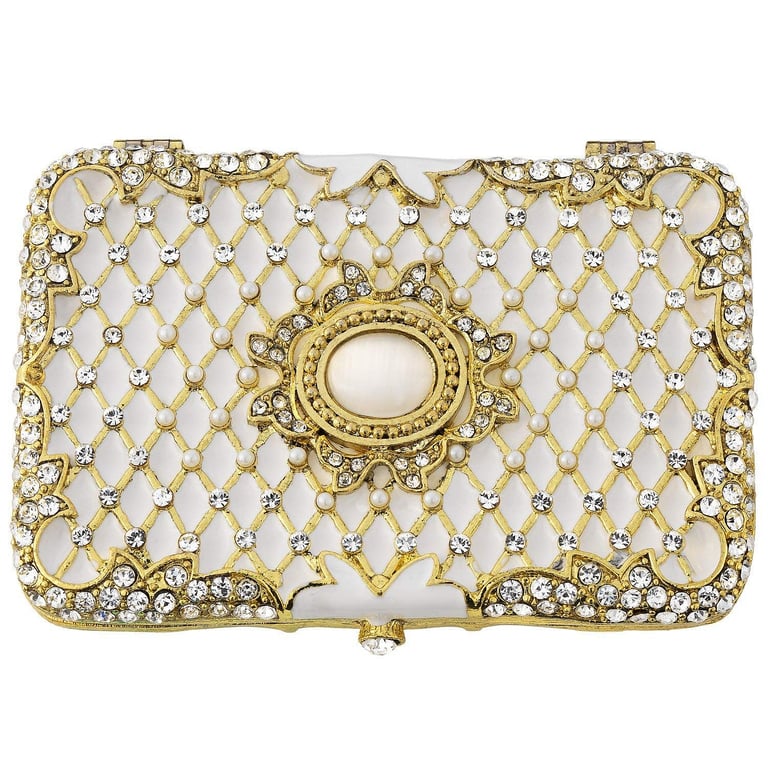 Main view Product Details Olivia Riegel IMPERIAL Gold Vermeil/Crystal/Perles PURSE COMPACT by Olivia Riegel® — Gold finished cast pewter mirrored compact with white hand-enameling, hand-set clear European crystals, faux pearls, and clear cat's eye cabochon. Opens up to reveal double-sided mirror, with one side at 1x magnification and one side at 2x magnification. Tarnish resistant. An original design from the Olivia Riegel® collection. SendAFrame proudly carries the entire photo frame Olivia Riegel® collection, and related gift pieces like this compact mirror, for your shopping convenience. IMPERIAL Gold Vermeil/Crystal/Perles PURSE COMPACT by Olivia Riegel® OLIVIA RIEGEL® FALL CELEBRATION SAVINGS - Buy More / Save More * Add this item to your cart for the full details of this promotion. Conditions may apply. Model #55015958 $115.00 This item IS in stock and can be expected to ship 11/21/2025 Your Price Match is Active Your request for a price of $0.00 for a minimum quantity of has been accepted. You have [time] left to purchase this item for $0.00 instead of $115.00 each. Find a Lower Price? We BEAT All Authorized Retailers [?] FEATURESMaterial:Pewter (fine)Finish:Gold, Ivory/Cream, WhiteOccasion:Anniversary, Birthday, Friendship, Housewarming, Mother`s Day, Romantic, Valentine`s Day, WeddingStyle:Ornate, RomanticBrand:Olivia RiegelDisplay Type:not applicable n/a Approx. Overall Dimensions:3 1/4"x2 1/4"x5/8" This item ships in its own box SHARE THIS ITEM Share on Facebook