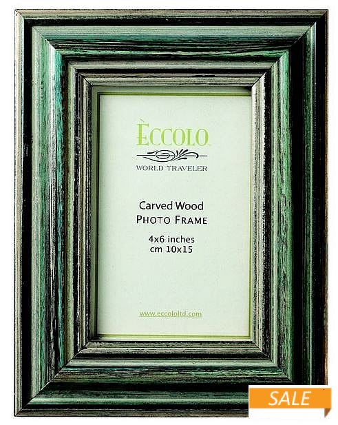 Product Details Èccolo™ Carved ACQUA Wood 4x6 frame by Eccolo™ — A hand applied antique finish gives the Eccolo™ World Traveler collection a distinctive look and appeal. Glare resistant glass lens; hard board easel back perfect for tabletop display. Wall mounts included for easy hanging.SendAFrame proudly carries the complete Eccolo™ Collection for your shopping convenience. Carved ACQUA Wood 4x6 frame by Eccolo™ Model #826635118428 List $24.50 You pay $12.19 In stock Ships next business day [?] Your Price Match is Active Your request for a price of $0.00 for a minimum quantity of has been accepted. You have [time] left to purchase this item for $0.00 instead of $12.19 each. Find a Lower Price? We BEAT All Authorized Retailers [?] FEATURESDisplays:4"x6"Material:Wood (full grain)Finish:Aquamarine, Green, TurquoiseOccasion:Home decoratingStyle:Rustic/Lodge, Shabby Chic, OrnateOrientation:BothBrand:Èccolo™ This item ships in its own box SHARE THIS ITEM Share on Facebook