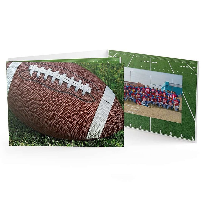 Main view Product Details Collectors Gallery FOOTBALL STITCHING Cardboard Photo Folder for 6x4 prints — Frame your photos and prints like a professional studio photographer - at a fraction of the price! Overall size measures 8 3/16" x 6 1/16" 6" x 4" size picture opening measures 6½" x 4½" Personalization (optional) included in price - have your name or logo printed on the front for no additional cost Holds one photo on the inside Lightweight smooth finish card stock paper Window border glued along top edge, bottom edge open Shipped flat, not folded Envelopes (optional) available separately (see ACCESSORIES) Great for team photos and basketball hoops events Individually priced; minimum 50. This folder is available with personalizing. Click PERSONALIZE THIS ITEM link for ordering details. Made in the U.S.A. FOOTBALL STITCHING Cardboard Photo Folder for 6x4 prints Model #021352135 List $2.50 You pay $1.85 This item IS in stock and can be expected to ship 02/06/2026 Your Price Match is Active Your request for a price of $0.00 for a minimum quantity of has been accepted. You have [time] left to purchase this item for $0.00 instead of $1.85 each. Find a Lower Price? We BEAT All Authorized Retailers [?] FEATURESDisplays:4"x6"Material:Card-stockFinish:GreenOccasion:Group Events + PartiesStyle:Contemporary, Sports & leisure, Teens & tweens, Travel ReadyOrientation:Horizontal OnlyBrand:Collectors GalleryDisplay Type:not applicable n/a Approx. Overall Dimensions:6 1/8"x8 3/8" SHARE THIS ITEM Share on Facebook