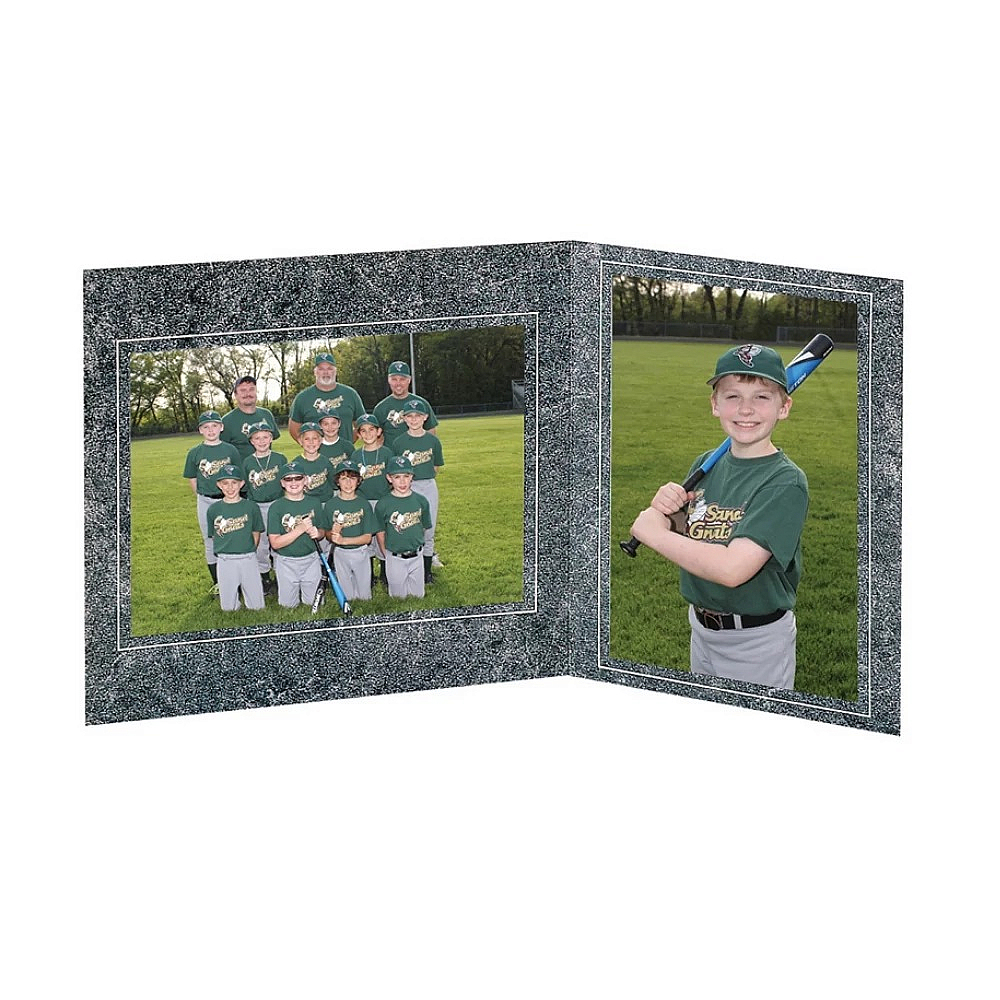 Marbleized Charcoal background frame displays a 7"x5" group photo and a smaller 3½"x5" individual print.
