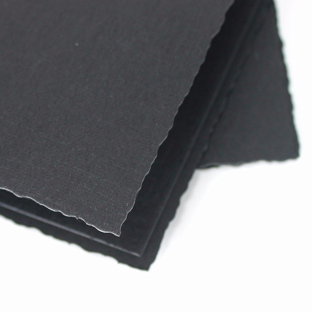 Terrific look and feel with linen weave finish, deckled edges with black foil window border.