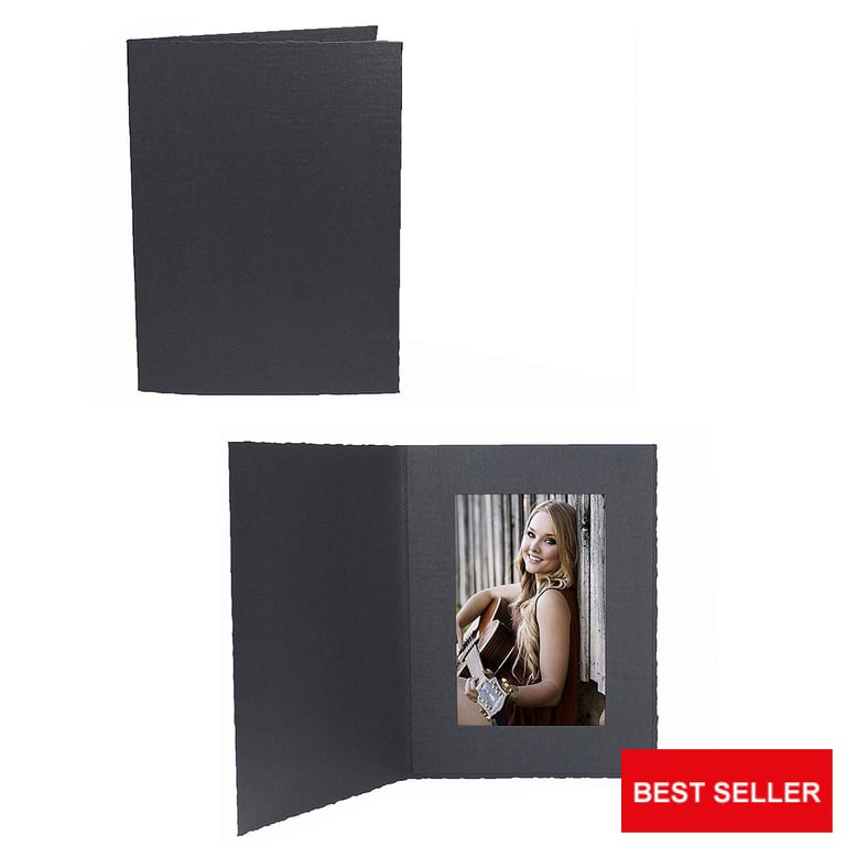 Cardboard Photomount Folder Single 4x6 Deckled-Edge frame Black w/plain border (sold in 25s) —