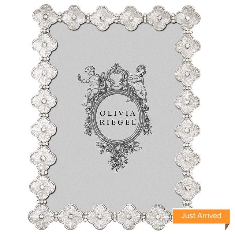 Main view Product Details Olivia Riegel SILVER CLOVER 5x7 frame by Olivia Riegel® — Inspired by the historic quatrefoil design - a decorative element utilized in architecture and the arts for millennia. Silver finished radial-textured pewter, adorned with hand-set clear European crystals. Elegant champagne hued moiré silk back, with easel designed for vertical or horizontal placement. Tarnish resistant. Signature luxury gift box included. An original design frame from the Olivia Riegel® collection. SILVER CLOVER 5x7 frame by Olivia Riegel® OLIVIA RIEGEL® FALL CELEBRATION SAVINGS - Buy More / Save More * Add this item to your cart for the full details of this promotion. Conditions may apply. Model #54966681 $125.00 This item IS in stock and can be expected to ship 11/21/2025 Your Price Match is Active Your request for a price of $0.00 for a minimum quantity of has been accepted. You have [time] left to purchase this item for $0.00 instead of $125.00 each. Find a Lower Price? We BEAT All Authorized Retailers [?] FEATURESDisplays:5"x7"Material:Jewels/crystalFinish:SilverOccasion:Anniversary, Birthday, Congratulations, Engagement, Graduation, Home decorating, Mother`s Day, Romantic, Thank-Motivate-Reward, WeddingStyle:Florals, Ornate, RomanticOrientation:BothBrand:Olivia RiegelDisplay Type:Desktop Only Approx. Overall Dimensions:3 1/2"x4 1/4" This item ships in its own box SHARE THIS ITEM Share on Facebook