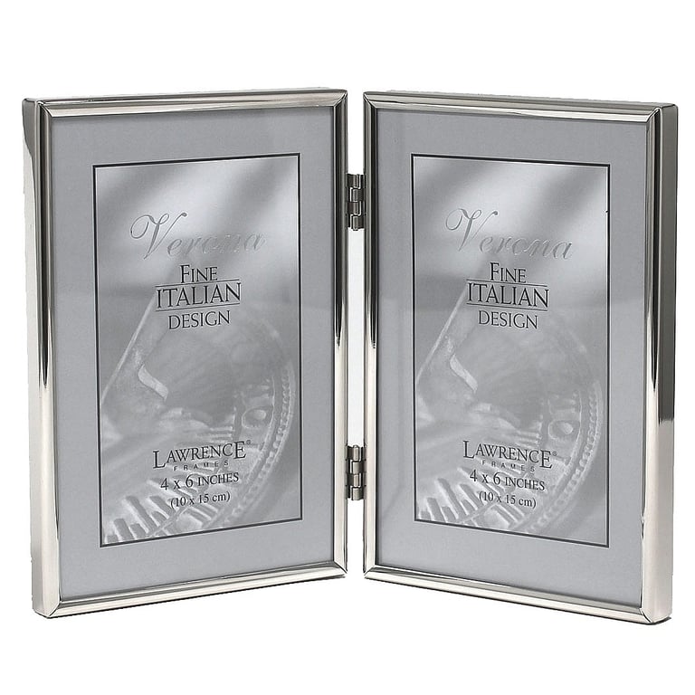 Main view Reverse Product Details Lawrence Frames® Polished SIMPLY SILVER double hinged 4x6 frame — Our polished silverplate frame is a nicely crafted desk piece with invisible seams and corners.Glare resistant glass lenses. Brass hinges for smooth closing.Produced by Lawrence®. Polished SIMPLY SILVER double hinged 4x6 frame Model #48067744 List $32.00 You pay $22.95 In stock Ships next business day [?] Your Price Match is Active Your request for a price of $0.00 for a minimum quantity of has been accepted. You have [time] left to purchase this item for $0.00 instead of $22.95 each. Find a Lower Price? We BEAT All Authorized Retailers [?] FEATURESDisplays:4"x6"Material:SilverplateFinish:SilverOccasion:Anniversary, Birthday, Good luck, Mother`s Day, Retirement, Romantic, Teacher gifts, Thank-Motivate-Reward, Celebrating Travels, Wedding, Business & office, Corporate gifts, Home decorating, Team & coach giftsStyle:Classic, Minimal, Traditional, Contemporary, Sophisticated, RomanticOrientation:Vertical OnlyBrand:Lawrence Frames®Display Type:Desktop or Wall This item ships in its own box SHARE THIS ITEM Share on Facebook