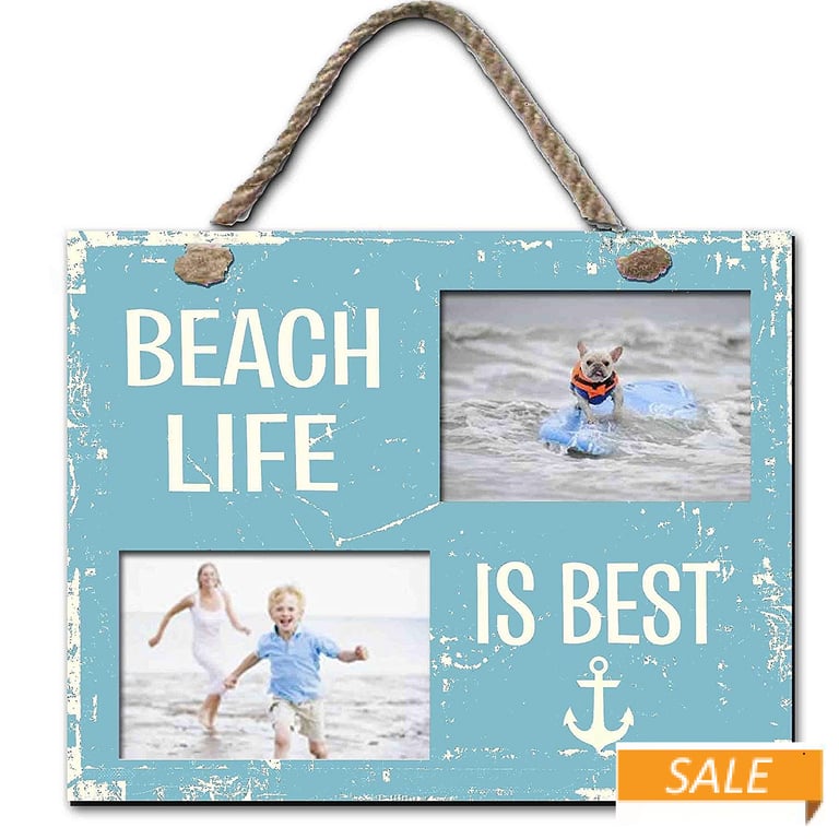 Product Details SIXTREES® BEACH LIFE IS THE BEST LIFE Coastal-Wood Double 6x4 Box Sign by Sixtrees® — BEACH LIFE IS BEST This adorable box sign will certainly set a fun outdoor mood. Displays two 6"x4" prints, Sixtrees®/ BEACH LIFE IS THE BEST LIFE Coastal-Wood Double 6x4 Box Sign by Sixtrees® Model #783729208277 List $24.50 You pay $8.90 In stock Ships next business day [?] Your Price Match is Active Your request for a price of $0.00 for a minimum quantity of has been accepted. You have [time] left to purchase this item for $0.00 instead of $8.90 each. Find a Lower Price? We BEAT All Authorized Retailers [?] FEATURESDisplays:4"x6"Material:Wood (mdf/engineered)Finish:Ivory/Cream, Multi-Color, TurquoiseOccasion:Celebrating Travels, Friendship, Housewarming, Public Area Display, Weekend Host GiftsStyle:Contemporary, Pop Culture, Rustic/Lodge, Shabby Chic, Sports & leisure, Words & whimsy, Coastal, Nautical & Shore, Expressions > ready madeOrientation:Horizontal OnlyBrand:SIXTREES®Display Type:Desktop or Wall Approx. Overall Dimensions:11"x14"x1 1/2" This item ships in its own box SHARE THIS ITEM Share on Facebook