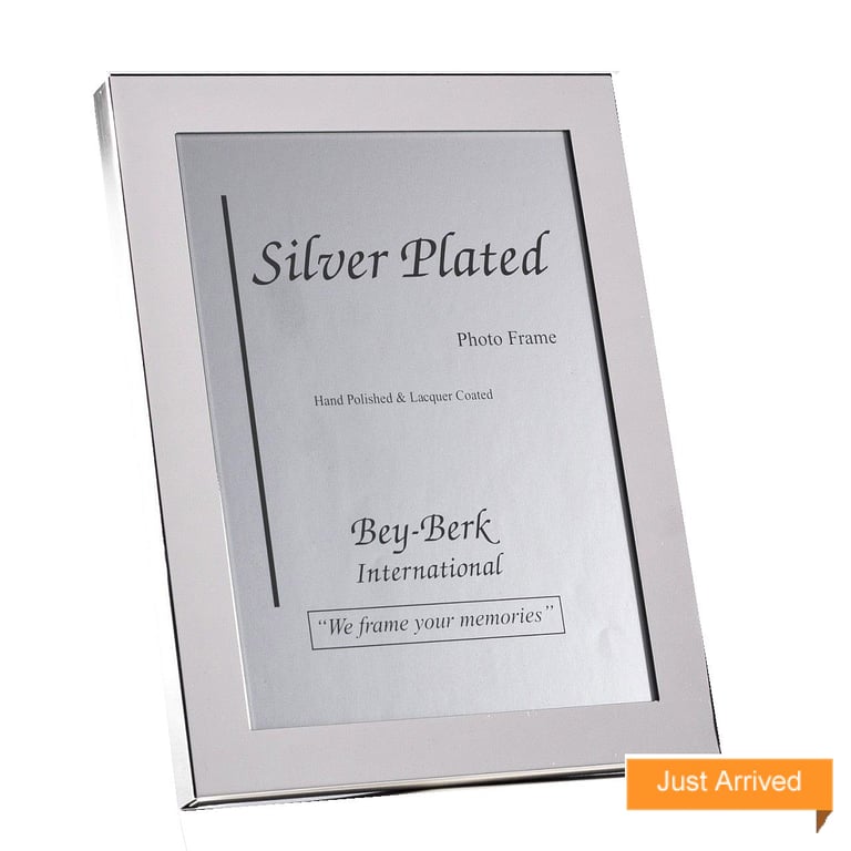 Main view Product Details Bey-Berk Engraveable polished 1-in silverplate 5x7 frame — Wide 1'' border quality silverplate mirror-polished frame. Slide-in channel black felt back with dual easel for portrait or landscape desktop display. Features an elegant stay ribbon for limiting the easel's angle. Wall-mounts also included for easy hanging. Glare resistant glass lens. Ships in a very nice protective white box. Click Personalize this item for more information. Crafted by Bey-Berk®. Engraveable polished 1-in silverplate 5x7 frame BEY-BERK® FALL CELEBRATION SAVINGS - Buy More / Save More * Add this item to your cart for the full details of this promotion. Conditions may apply. Model #40220053 List $46.50 You pay $34.95 In stock Can be shipped today [?] Your Price Match is Active Your request for a price of $0.00 for a minimum quantity of has been accepted. You have [time] left to purchase this item for $0.00 instead of $34.95 each. Find a Lower Price? We BEAT All Authorized Retailers [?] FEATURESDisplays:5"x7"Material:SilverplateFinish:SilverOccasion:Congratulations, Get well, Graduation, Mother`s Day, Housewarming, Inspirational, Thank-Motivate-Reward, Birthday, Corporate giftsStyle:Classic, Minimal, TraditionalOrientation:BothBrand:Bey-BerkDisplay Type:Desktop or Wall Approx. Overall Dimensions:6 1/4"x8 1/4"x3/4" This item ships in its own box SHARE THIS ITEM Share on Facebook