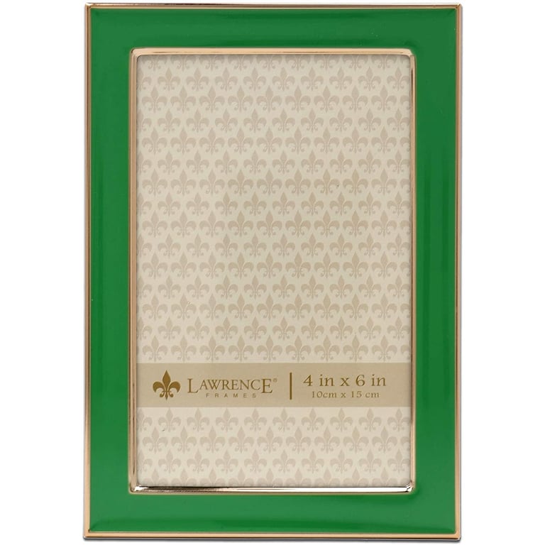 Main view Product Details Lawrence Frames® Green Enamel w/Gold Trim 4x6 by Lawrence — A high quality gold plated frame with polished green enamel panel. This gold plated and lacquer coated frame has a beautiful lustrous finish. Includes a high quality black velvet backing with an easel for vertical or horizontal table top display, and hangers for vertical or horizontal wall mounting. Heavy weight metal picture frame is made with exceptional workmanship and comes individually boxed. From Lawrence®, maker of fine frames for generations. Green Enamel w/Gold Trim 4x6 by Lawrence Model #48079525 List $27.50 You pay $22.95 This item IS in stock and can be expected to ship 11/18/2025 Your Price Match is Active Your request for a price of $0.00 for a minimum quantity of has been accepted. You have [time] left to purchase this item for $0.00 instead of $22.95 each. Find a Lower Price? We BEAT All Authorized Retailers [?] FEATURESDisplays:4"x6"Material:EnamelFinish:Gold, GreenOccasion:Business & office, Congratulations, Home decorating, Celebrating TravelsStyle:Classic, Contemporary, TraditionalOrientation:BothBrand:Lawrence Frames®Display Type:Desktop or Wall Approx. Overall Dimensions:4 3/4"x6 3/4"x5/8" This item ships in its own box SHARE THIS ITEM Share on Facebook