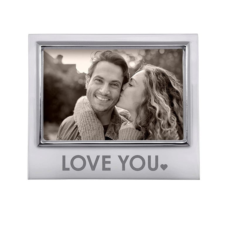 Main view Product Details Mariposa® LOVE YOU 6x4 SIGNATURE frame by Mariposa® — The SIGNATURE frame for 6"x4" photos engraved with the sentiment LOVE YIU Mariposa fine metallic decor is handcrafted from 100% recycled sandcast aluminum. Frame will not tarnish If needed, handwash in warm water with mild soap and towel dry immediately Occasional use of non-abrasive metal polish will revive luster SendAFrame stocks the entire Mariposa® picture frame collection. To start - or add to your collection, click: Mariposa® Design Collection Important Note: Mariposa items are hand engraved. Your piece may differ slightly from the photo. Hint: If you would like this style customized with names, a date . . . use the blank model and have us engrave for you. LOVE YOU 6x4 SIGNATURE frame by Mariposa® Mariposa® FALL CELEBRATION Savings - Buy More / Save More * Add this item to your cart for the full details of this promotion. Conditions may apply. Model #808813195650 List $64.00 You pay $58.95 In stock Ships next business day [?] Your Price Match is Active Your request for a price of $0.00 for a minimum quantity of has been accepted. You have [time] left to purchase this item for $0.00 instead of $58.95 each. Find a Lower Price? We BEAT All Authorized Retailers [?] FEATURESDisplays:4"x6"Material:AluminumFinish:SilverOccasion:Anniversary, Birthday, Engagement, Inspirational, Valentine`s Day, WeddingStyle:Contemporary, Eco-Friendly-Recycled, Modern, Santa Fe, Shabby Chic, Sophisticated, Words & whimsy, Expressions > ready madeOrientation:Horizontal OnlyBrand:Mariposa®Display Type:Desktop Only Approx. Overall Dimensions:6 3/4"x5 3/4"x3/4" This item ships in its own box SHARE THIS ITEM Share on Facebook