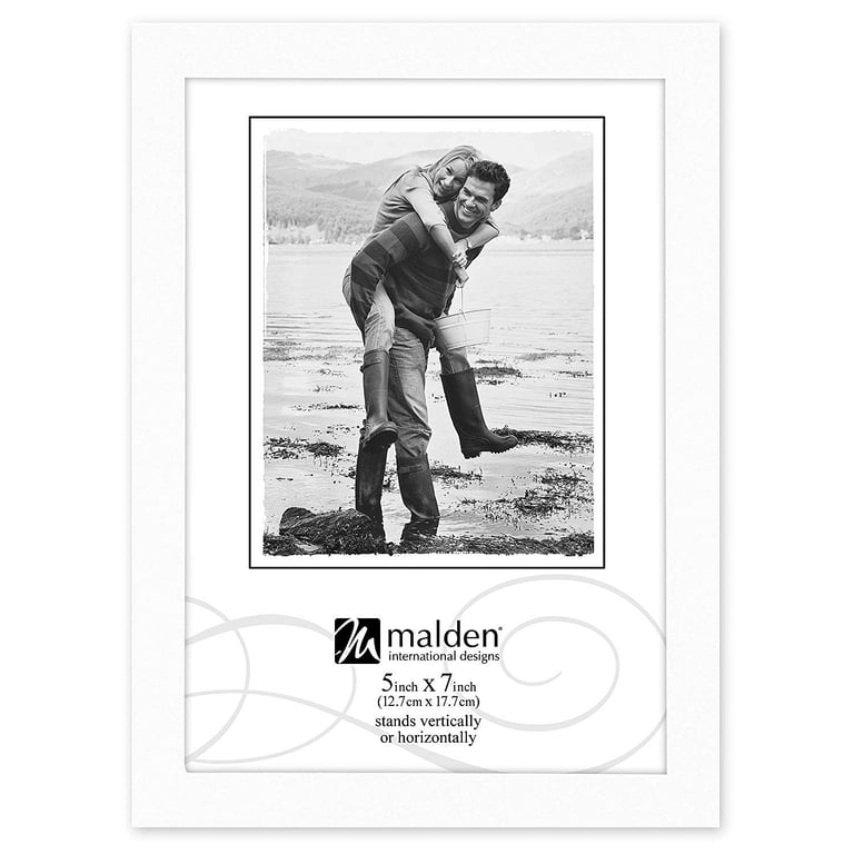 Product Details Malden Designs® White wood CONCEPTS 5x7 frame — This is a contemporary piece crafted in white-stained hardwood.Square edged corners, narrow stylish moulding, and fine grain detail, it has a quality look and feel at a value price.Has an easel back for tabletop display. Wall mounting attachments also included for easy hanging.Moulding measures ½" wide. Glare resistant glass lens.By Malden Designs® White wood CONCEPTS 5x7 frame Malden Designs® FALL CELEBRATION Savings - ends SundayBuy More / Save More * Add this item to your cart for the full details of this promotion. Conditions may apply. Model #87064255 List $10.50 You pay $7.95 In stock Ships next business day [?] Your Price Match is Active Your request for a price of $0.00 for a minimum quantity of has been accepted. You have [time] left to purchase this item for $0.00 instead of $7.95 each. Find a Lower Price? We BEAT All Authorized Retailers [?] FEATURESDisplays:5"x7"Material:Wood (mdf/engineered)Finish:WhiteOccasion:Business & office, Corporate gifts, Easter, Friendship, Home decorating, Mother`s Day, New baby, Sweet 16, Teacher gifts, Team & coach gifts, Thank-Motivate-Reward, Celebrating Travels, WeddingStyle:Classic, Contemporary, Minimal, TraditionalOrientation:BothBrand:Malden Designs®Display Type:Desktop or Wall Approx. Overall Dimensions:6 1/8"x8 1/8"x1" This item ships in its own box SHARE THIS ITEM Share on Facebook