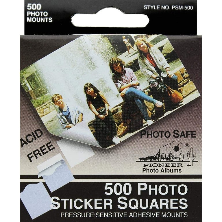 Box contains 500 permanent adhesive pressure sensitive photo-mounting squares.